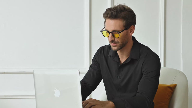 Lenti certificate per bloccare la luce blu, progettate per il lavoro, il relax e un sonno migliore.